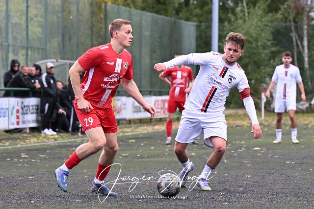 Fussball, Bezirksliga Ost, SG Malberg (rot) vs. FC Kosova Montabaur (weiss), 04.10.2025 |