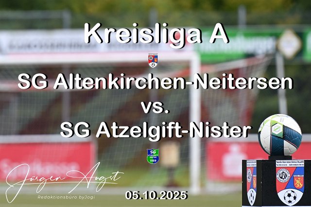 Fussball, Kreisliga A, SG Altenkirchen-Neitersen (Rot/blau) vs. SG Atzelgift-Nister (grün/weiß), 05.10.2025 |