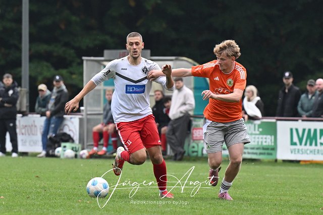 Fussball, Bezirksliga Ost, SG Lautzert-Oberdreis-Berod-Wahlrod (weiß/rot) vs. FC Borussia Niederdrossbach (orange/grau), 12.10.2025 |