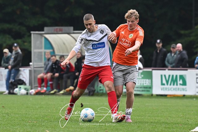 Fussball, Bezirksliga Ost, SG Lautzert-Oberdreis-Berod-Wahlrod (weiß/rot) vs. FC Borussia Niederdrossbach (orange/grau), 12.10.2025 |