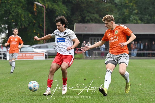 Fussball, Bezirksliga Ost, SG Lautzert-Oberdreis-Berod-Wahlrod (weiß/rot) vs. FC Borussia Niederdrossbach (orange/grau), 12.10.2025 |