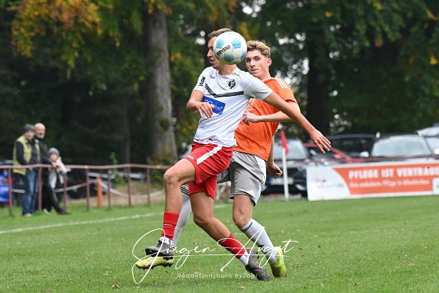 Fussball, Bezirksliga Ost, SG Lautzert-Oberdreis-Berod-Wahlrod (weiß/rot) vs. FC Borussia Niederdrossbach (orange/grau), 12.10.2025 |