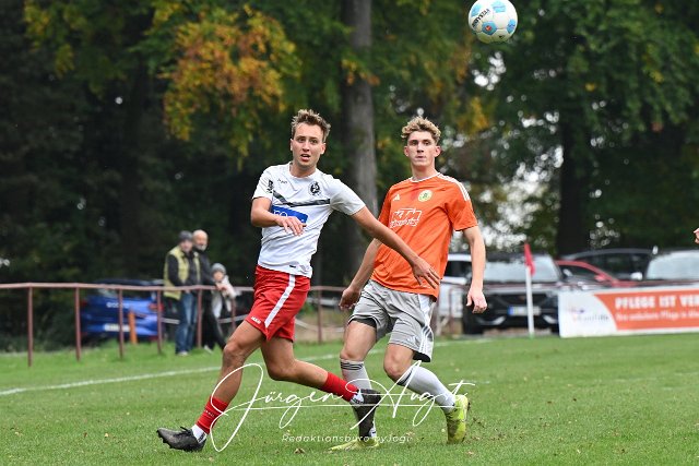 Fussball, Bezirksliga Ost, SG Lautzert-Oberdreis-Berod-Wahlrod (weiß/rot) vs. FC Borussia Niederdrossbach (orange/grau), 12.10.2025 |