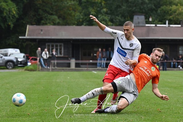 Fussball, Bezirksliga Ost, SG Lautzert-Oberdreis-Berod-Wahlrod (weiß/rot) vs. FC Borussia Niederdrossbach (orange/grau), 12.10.2025 |