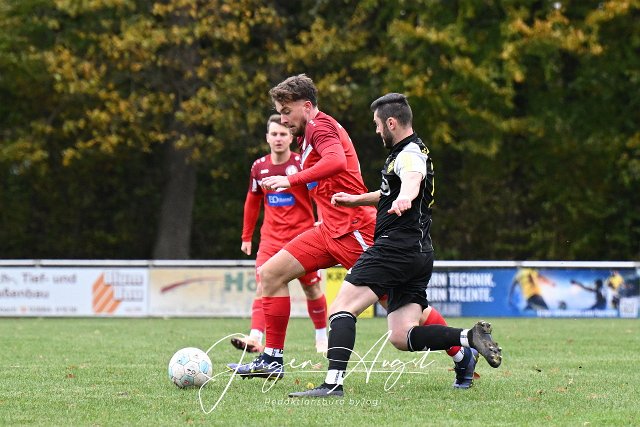 Fussball, Bezirksliga Ost, SG Lautzert-Oberdreis-Berod-Wahlrod (rot) vs SG Ahrbach (schwarz), 26.10.2025 | ||