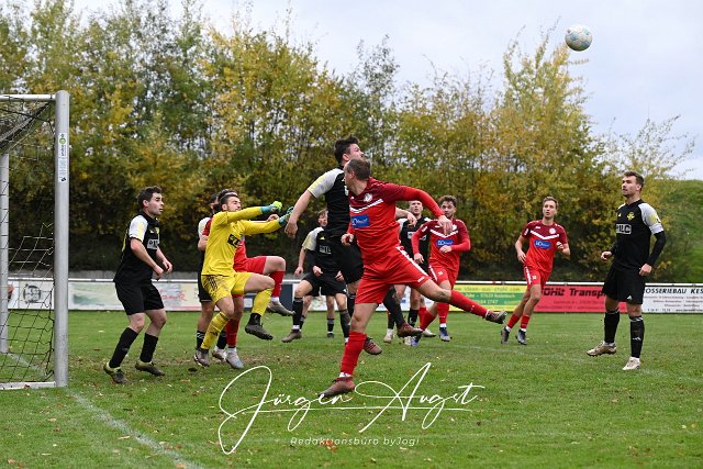 Fussball, Bezirksliga Ost, SG Lautzert-Oberdreis-Berod-Wahlrod (rot) vs SG Ahrbach (schwarz), 26.10.2025 | ||