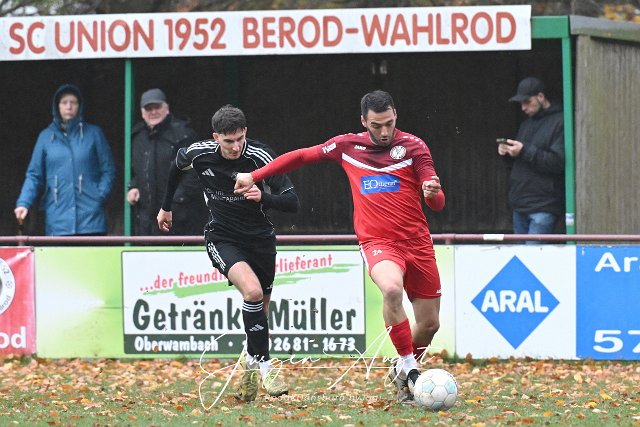 Fussball, Bezirksliga Ost, SG Lautzert-Oberdreis-Berod-Wahlrod (rot) vs. SG Hundsangen (schwarz), 09.11.2025 | ||
