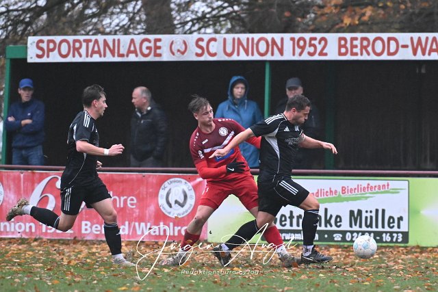 Fussball, Bezirksliga Ost, SG Lautzert-Oberdreis-Berod-Wahlrod (rot) vs. SG Hundsangen (schwarz), 09.11.2025 | ||