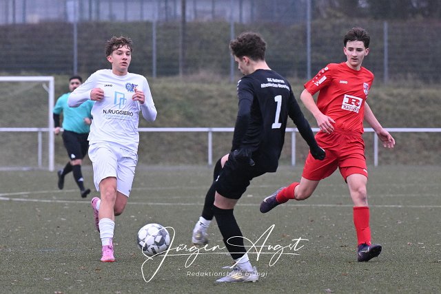 Fussball, Rheinlandliga B-Junioren, JSG Altenkirchen-Neitersen-Weyerbuscg (rot) vs. JSG Neuwied (weuß), 13.12.2025 | ||