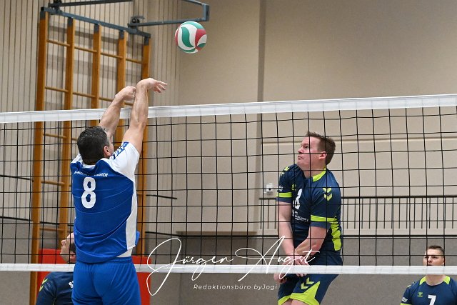 Volleyball, Verbandsliga Nord, Männer, SSG Etzbach (dunkelblau) vs TuS Mosella Schweich (blau), 13.12.2025 | ||