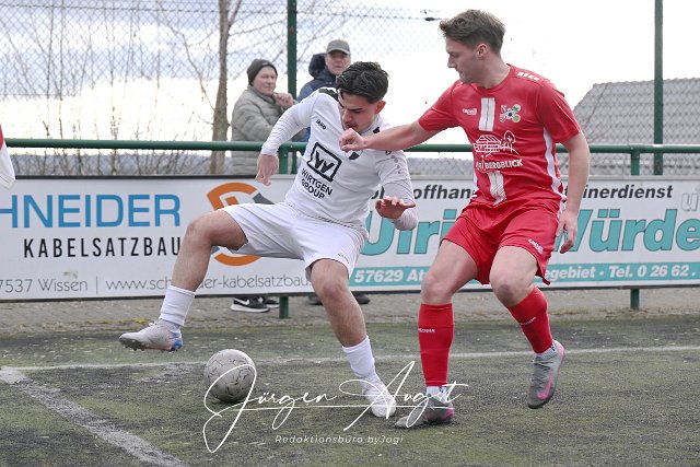 Fussball, Bezirksliga Ost, SG Malberg (rot) vs. SV Windhagen (weiß), 28.02.2026 | ||