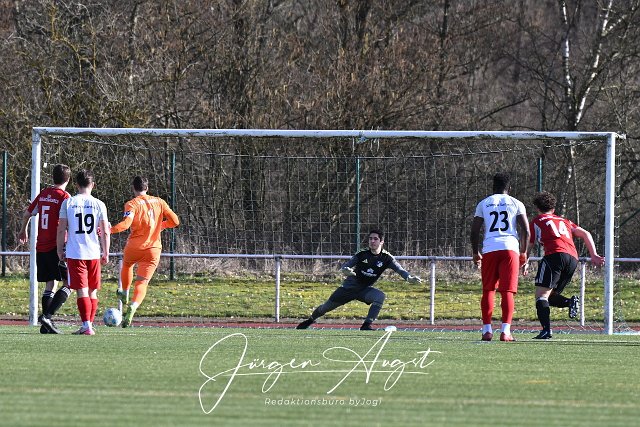 Fussball, Bezirksliga Ost, SG Lautzert-Oberdreis-Berod-Wahlrod (weiß-rot)vs. TuS Burgschwalbach (rot-schwarz), 01.03.2026 | ||