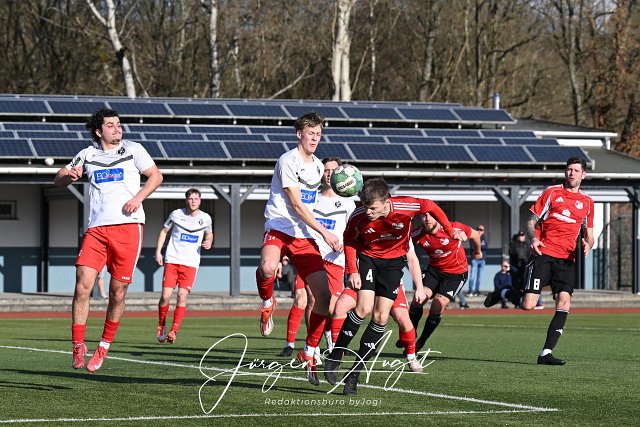 Fussball, Bezirksliga Ost, SG Lautzert-Oberdreis-Berod-Wahlrod (weiß-rot)vs. TuS Burgschwalbach (rot-schwarz), 01.03.2026 | ||