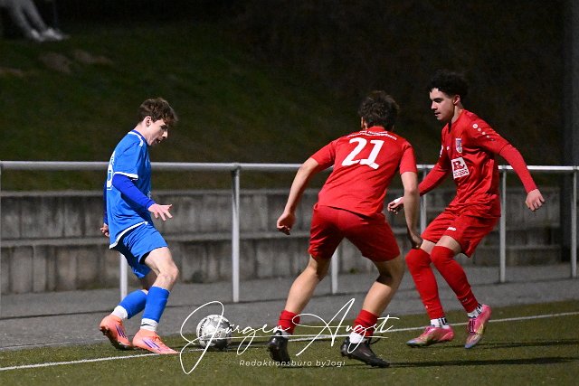 Fussball, Rheinlandliga B-Junioren, JSG Altenkirchen-Neitersen-Weyerbusch (rot) vs. SG 2000 Muelheim-Kaerlich (blau), 07.03.2026 | ||