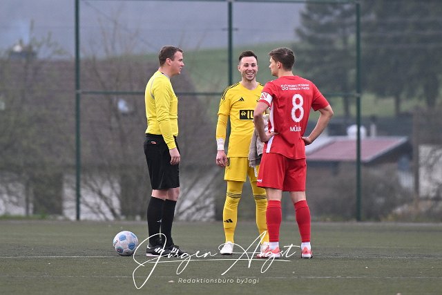 Fussball,Bezirksliga Ost, SG Malberg (rot) vs. SG Ahrbach (schwarz), 02.04.2026 | ||