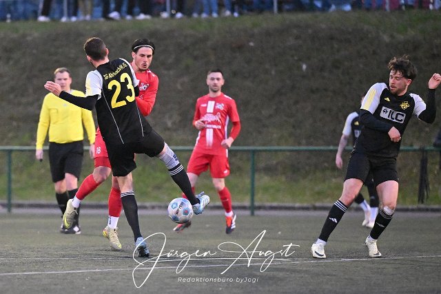Fussball,Bezirksliga Ost, SG Malberg (rot) vs. SG Ahrbach (schwarz), 02.04.2026 | ||