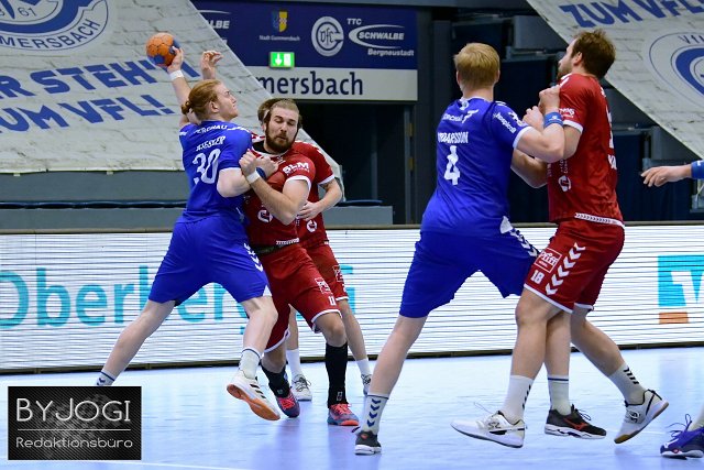 Markus Hansen (#11 / VfL Luebeck-Schwartau) wird von Tom Kiesler (#30 / VfL Gummersbach) geblockt, Handball, 2. Bundesliga, 19. Spieltag, VfL Gummersbach vs VfL Lübecke-Schwartau - Foto: Jogi/Eibner-Pressefoto | ||