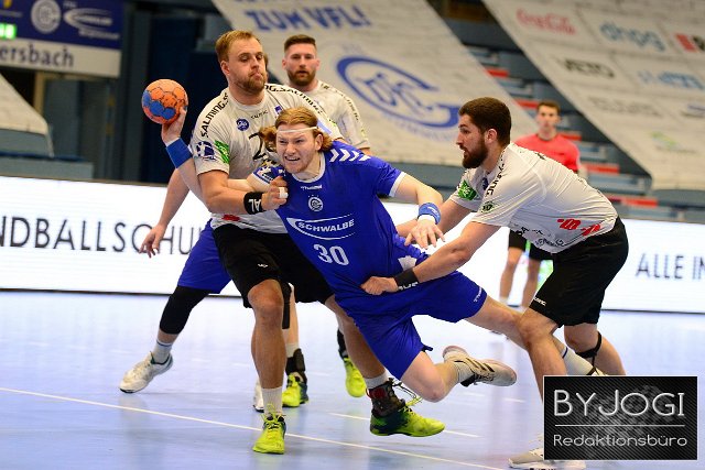 Tom Kiesler (#30 / VfL Gummersbach) setzt sich am Kreis gegen Frederic Stueber (#28 / TV Emsdetten) und Jan Mojzis (#99 / TV Emsdetten) durch, Handball, 2. Bundesliga, 24. Spieltag, VfL Gummersbach vs TV Emsdetten - Foto: Jogi/Eibner-Pressefoto | ||