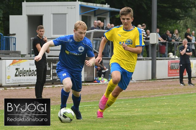 Fussball, Vorbereitungsspiel, Spielzeit21/22 VfB Wissen (blau) vs. SG Müschenbach (gelb/blau), 31-07.2021 | ||