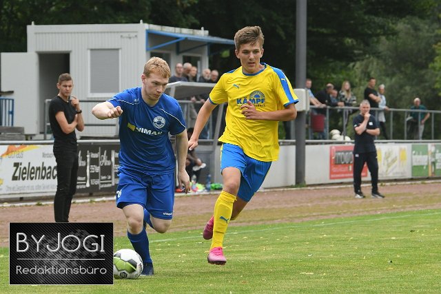 Fussball, Vorbereitungsspiel, Spielzeit21/22 VfB Wissen (blau) vs. SG Müschenbach (gelb/blau), 31-07.2021 | ||