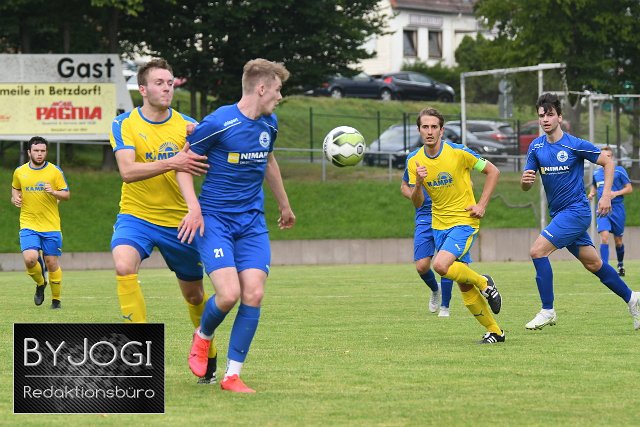 Fussball, Vorbereitungsspiel, Spielzeit21/22 VfB Wissen (blau) vs. SG Müschenbach (gelb/blau), 31-07.2021 | ||