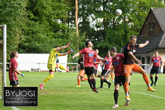 Fussball, Rheinlandpokal 2021/22, Runde 1, SG Lautzert-Oberdreis-Berod-Wahlrod (rot/schwatz) vs. SG HWW Emmerichenhain-Niederrossbach (schwatz/orange), 06.08.2021 | ||