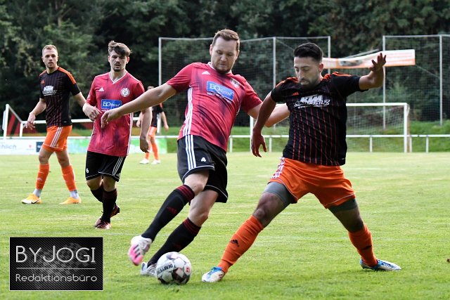 Fussball, Rheinlandpokal 2021/22, Runde 1, SG Lautzert-Oberdreis-Berod-Wahlrod (rot/schwatz) vs. SG HWW Emmerichenhain-Niederrossbach (schwatz/orange), 06.08.2021 | ||