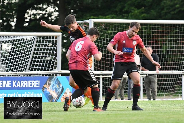 Fussball, Rheinlandpokal 2021/22, Runde 1, SG Lautzert-Oberdreis-Berod-Wahlrod (rot/schwatz) vs. SG HWW Emmerichenhain-Niederrossbach (schwatz/orange), 06.08.2021 | ||