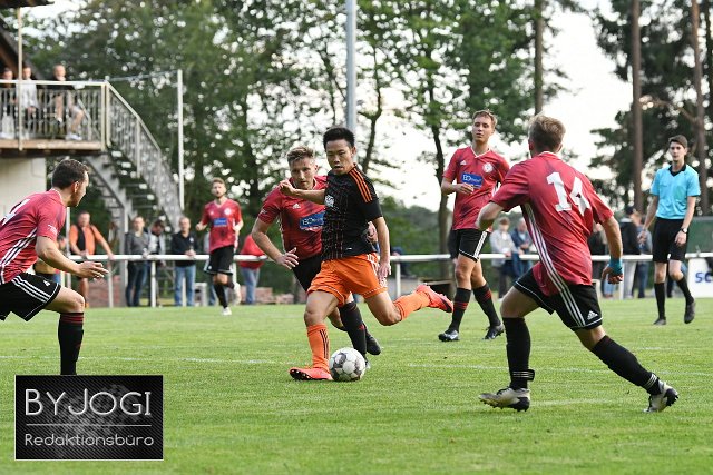 Fussball, Rheinlandpokal 2021/22, Runde 1, SG Lautzert-Oberdreis-Berod-Wahlrod (rot/schwatz) vs. SG HWW Emmerichenhain-Niederrossbach (schwatz/orange), 06.08.2021 | ||