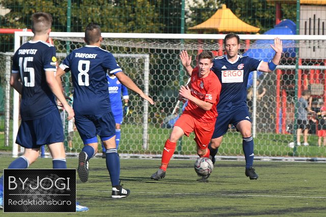 Fussball, Rheinlandliga, SG Malberg (rot) vs. FSV Trier-Tarforst (blau), 04.09.2021 | ||