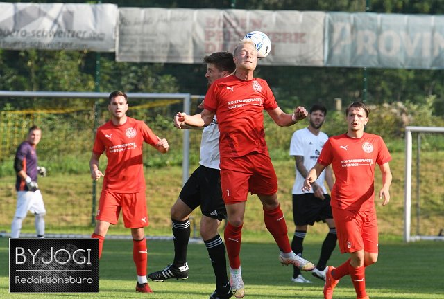Fussball, Bezirksliga Ost, SG Weitefeld (rot) vs. TUS Burgschwalbach (weiß/schwarz), 05.09.2021 | ||