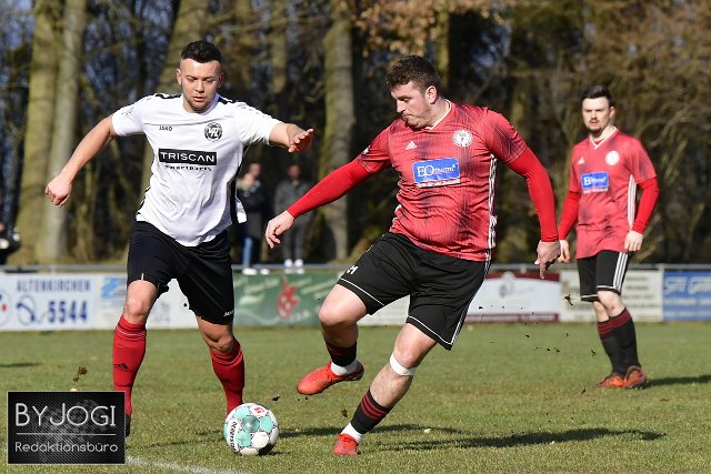 Fussball, Kreisliga A WWSieg, SG Lautzert-Oberdreis-Berod-Wahlrod (rot/schwarz) vs. VfL Hamm (weiß/schwarz), 06.03.2022, 06.03 2022 | ||
