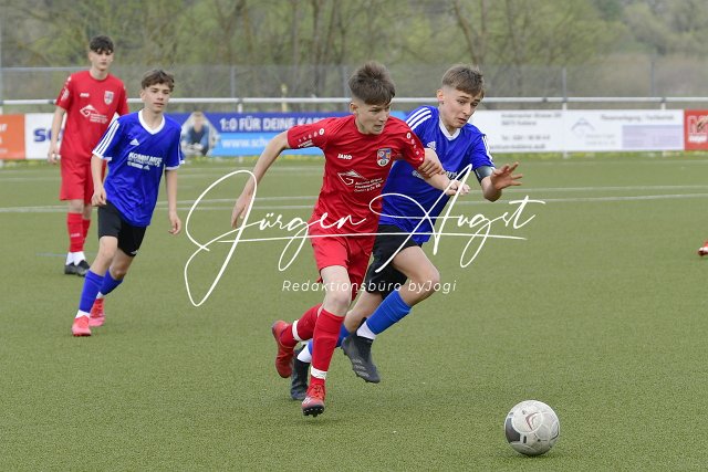 Fussball, Rheinlandpokal Viertelfinale, C-Junioren, JSG Neitersen-Altenkiirchen (rot) vs. Spfr. Eisbachtal (blau/schwarz), 23.04.2022 | ||