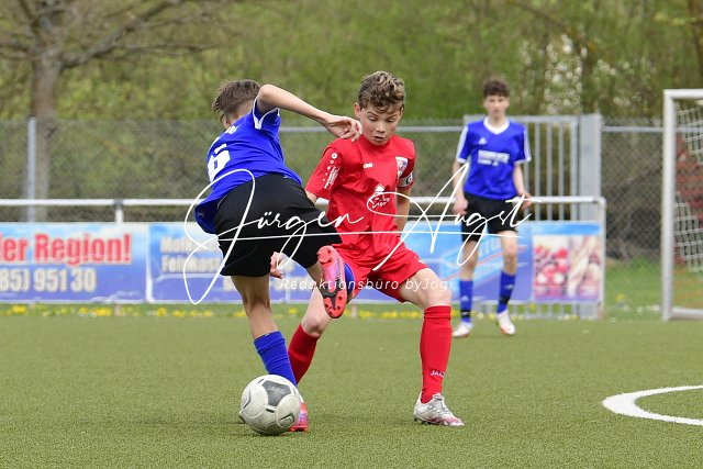 Fussball, Rheinlandpokal Viertelfinale, C-Junioren, JSG Neitersen-Altenkiirchen (rot) vs. Spfr. Eisbachtal (blau/schwarz), 23.04.2022 | ||