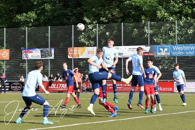 Fussball, Rheinlandliga A-Junioren, JSG Altenkirchen (blau/rot) vs. SG 99 Andernach (hellblau/schwarz), 21.05.2022 | ||