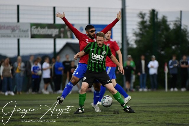 Fussball, Kreisliga B2 Entscheidungsspiel, SG Honigsessen-Katzwinkel (grĂ¼n/schwarz) vs. SG Neitersen-Altenkirchen (rot/blau), 10.06.2022 | ||