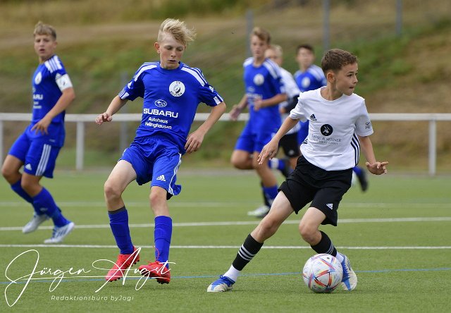 Fussball, Rheinlandliga C-Junioren, JFV Wolfstein (blau) vs. Spfr. Eisbachtal II (weiß/schwarz), 10.09.2022 | ||