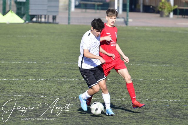 Fussball, Rheinlandliga, C-Junioren, JSG Weyerbusch (weiß/schwarz) vs. SSV Heimbach-Weis (rot), 08.10.2022 | ||