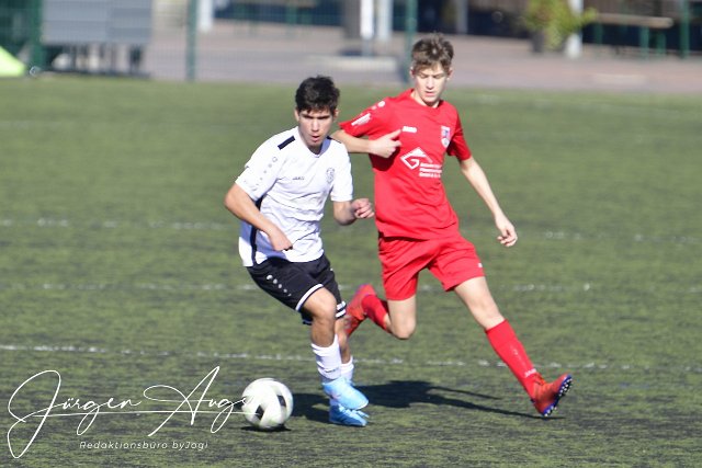 Fussball, Rheinlandliga, C-Junioren, JSG Weyerbusch (weiß/schwarz) vs. SSV Heimbach-Weis (rot), 08.10.2022 | ||