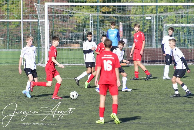 Fussball, Rheinlandliga, C-Junioren, JSG Weyerbusch (weiß/schwarz) vs. SSV Heimbach-Weis (rot), 08.10.2022 | ||