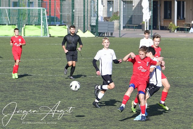 Fussball, Rheinlandliga, C-Junioren, JSG Weyerbusch (weiß/schwarz) vs. SSV Heimbach-Weis (rot), 08.10.2022 | ||