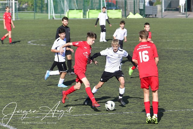 Fussball, Rheinlandliga, C-Junioren, JSG Weyerbusch (weiß/schwarz) vs. SSV Heimbach-Weis (rot), 08.10.2022 | ||
