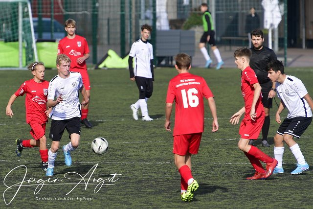 Fussball, Rheinlandliga, C-Junioren, JSG Weyerbusch (weiß/schwarz) vs. SSV Heimbach-Weis (rot), 08.10.2022 | ||