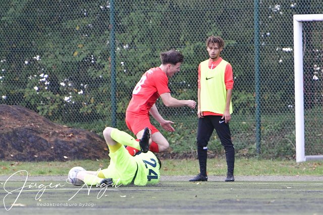 Fussball, Rheinlandliga, SG Malberg (rot) vs. FSG Ehrang (weiß), 15.10.2022 | ||