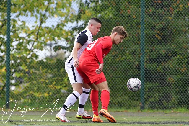 Fussball, Rheinlandliga, SG Malberg (rot) vs. FSG Ehrang (weiß), 15.10.2022 | ||