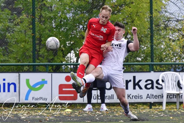 Fussball, Rheinlandliga, SG Malberg (rot) vs. FSG Ehrang (weiß), 15.10.2022 | ||