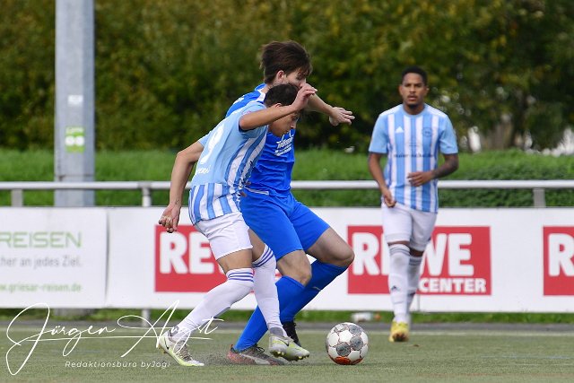 Fussball, Bezirksliga Ost, Spvgg. EGC Wirges (blau) vs SF Wallmanroth (blau-weiss), 16.10.2022 | ||