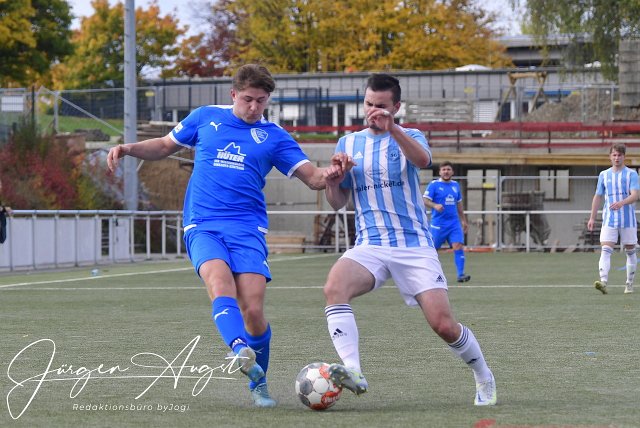 Fussball, Bezirksliga Ost, Spvgg. EGC Wirges (blau) vs SF Wallmanroth (blau-weiss), 16.10.2022 | ||