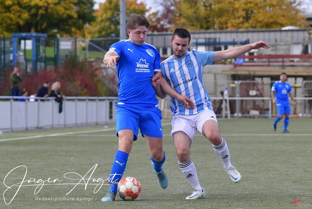 Fussball, Bezirksliga Ost, Spvgg. EGC Wirges (blau) vs SF Wallmanroth (blau-weiss), 16.10.2022 | ||
