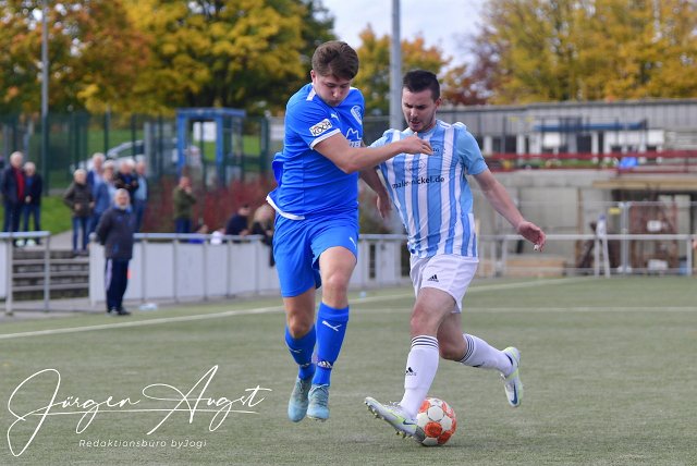 Fussball, Bezirksliga Ost, Spvgg. EGC Wirges (blau) vs SF Wallmanroth (blau-weiss), 16.10.2022 | ||